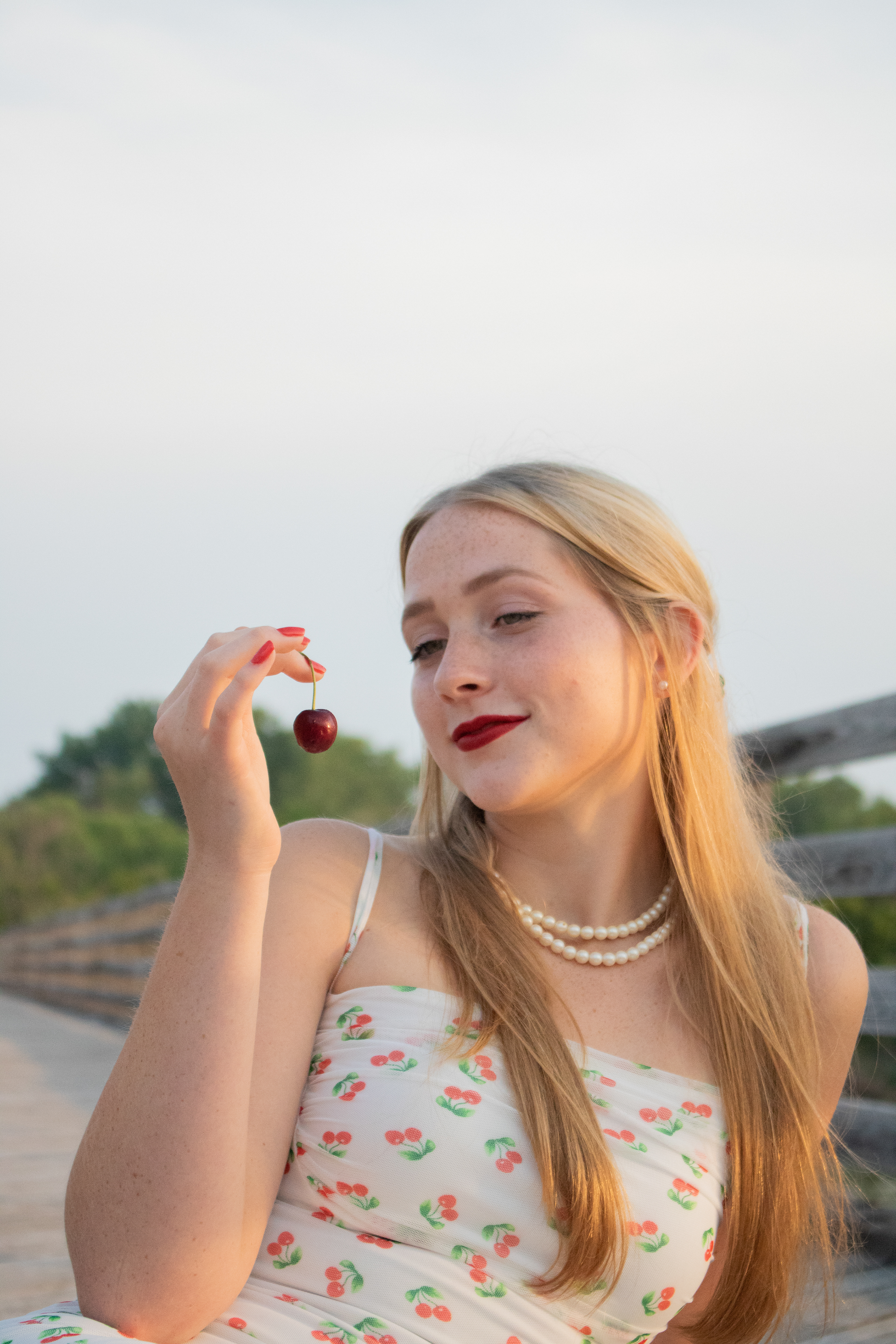 This vibrant summer portrait session captures the warmth of golden hour and the timeless beauty of friendship. Featuring three young women styled in vintage-inspired white attire and classic pearl accessories, the session centered around a shared bowl of fresh cherries to evoke themes of youth, nostalgia, and seasonal abundance. The natural lighting highlights the soft textures of skin, freckles, and hair, while the close-up composition draws the viewer into an intimate, almost cinematic moment. The image balances playful charm with a touch of elegance—perfect for lifestyle or editorial storytelling.